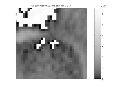 Below is an example of the performance improvement using the Constant MTF Resampling Interpolator. Descriptions of analyses performed on this resampler for non-medical purposes can be found